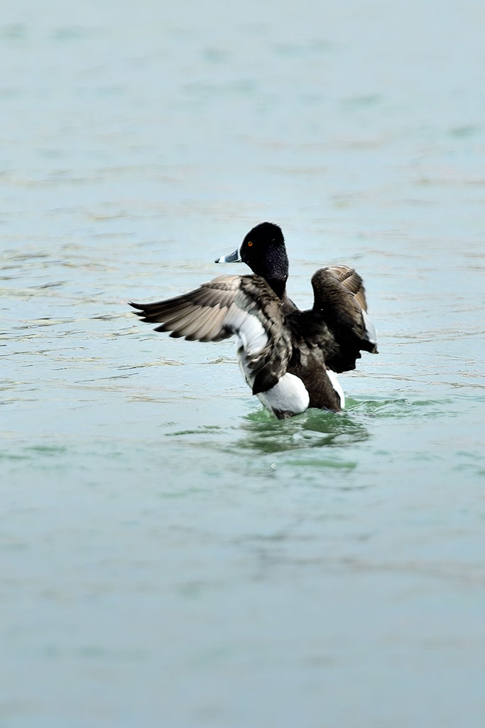 [分布・生息環境] まれなる冬鳥として北海道、福島県、東京都和歌山県、高知県などで記録がある。東京の不忍池では数年間渡来するなど記録が多い。アラスカを除く北アメリカ寒帯域で繁殖し、冬は北アメリカ中・南部、中央アメリカへ渡る。湖沼、池、河川、内湾などに生息。